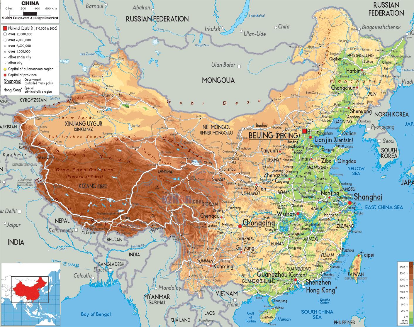 China dalam peta. Chin peta (Asia Timur - Tenggara) untuk mencetak. Chin peta (Asia Timur - Tenggara) untuk turun.